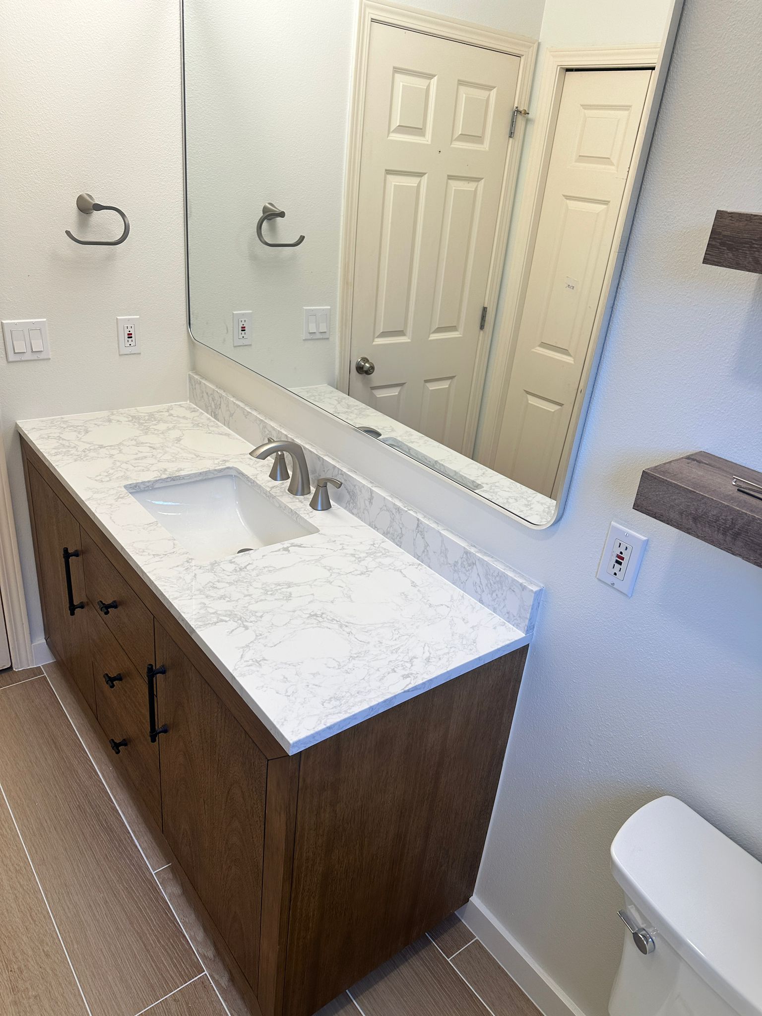 The project was completed in approximately 15 days. The total cost is variable, depending on material selections and customization, but a full bathroom remodel adds lasting value and comfort to the home.